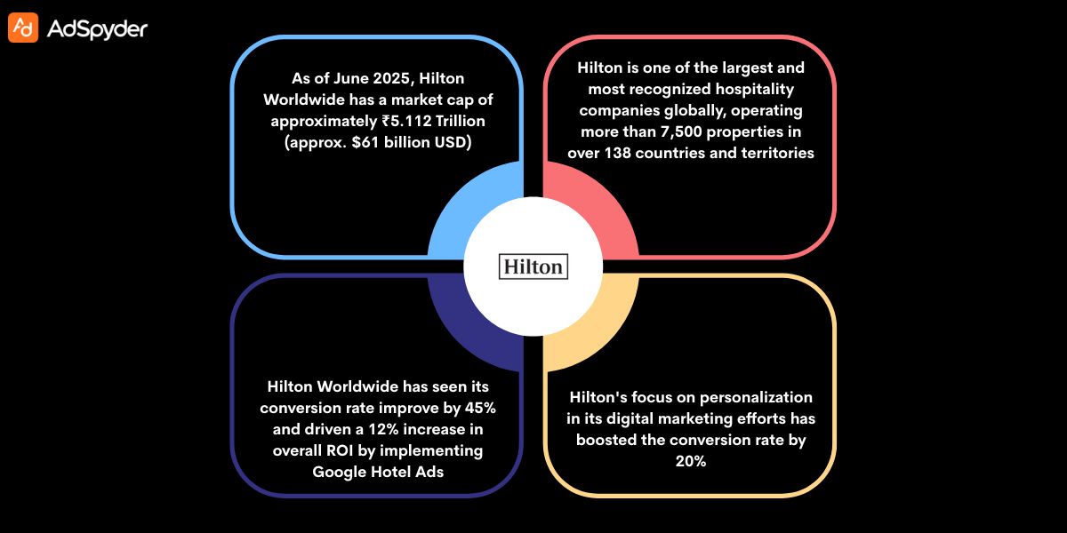 Hilton caters to a broad range of customer segments, such as business travelers, families, honeymooners, and budget-conscious tourists. Each of these audience segments has its very own needs, substantially different needs from the others, and Hilton Ads Best Practices cater to them. For instance, ads aimed at business travelers often emphasize convenience, such as loyalty programs, check-in/check-out flexibility, and amplifying high-speed internet. Meanwhile, advertisements targeting families may emphasize kid-friendly pools, dining options, and family package deals.