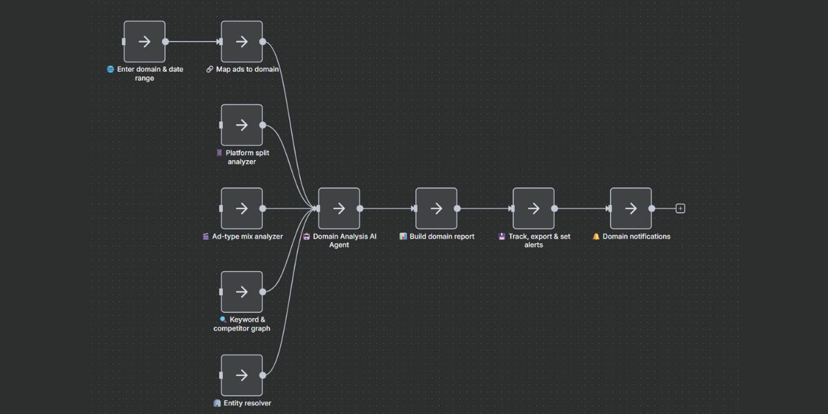 Deconstruct any domain's complete ad strategy in minutes, not hours.